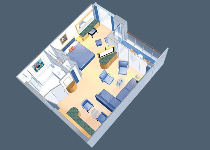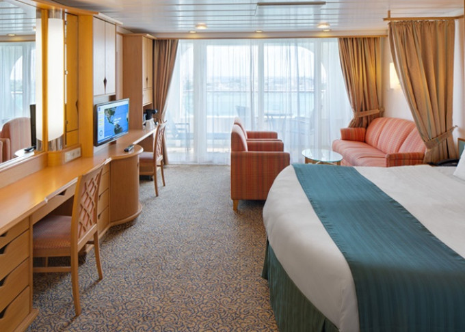| VP - Ocean View Panoramic Suite (bez balkónu) 37 m². Panoramatické neotvárateľné okná.12. paluba - vpredu. Max 6 osôb. Výhody Royal Suite Class. | 6 900 € 1 725 € za osobu | ||